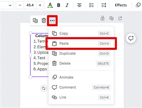 can you add columns to a text box in canva