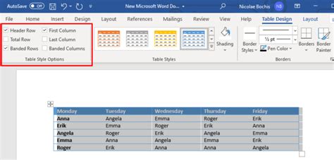 change background color word table