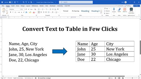 convert text to table in word