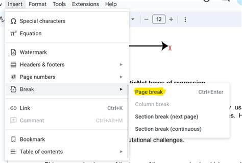 how do i make a page break in google docs