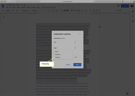 how do you insert a hanging indent in google docs