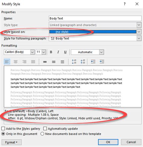 how to add body text style in word