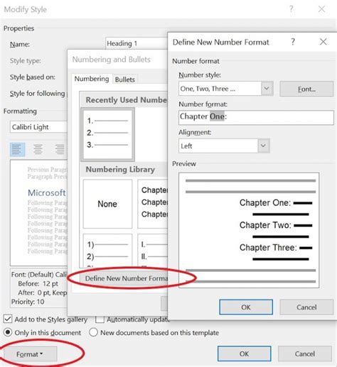 how to add chapter numbers to table of contents word