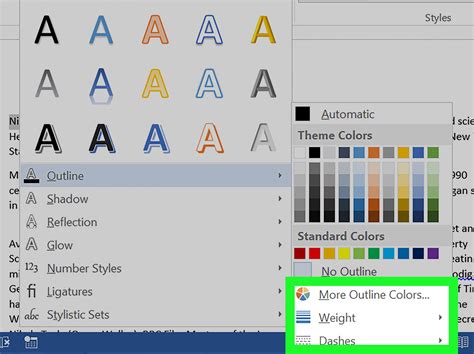 how to add outline around text in word