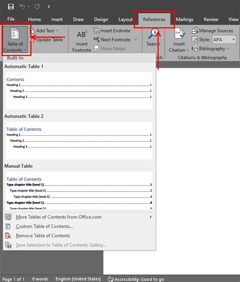 how to add table of content in word mac