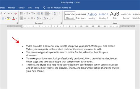 how to adjust bullet point spacing in word