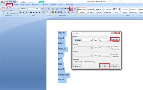 how to arrange text in ascending alphabetical order in word