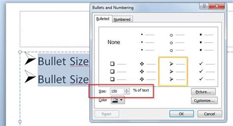 how to change bullet size in ppt