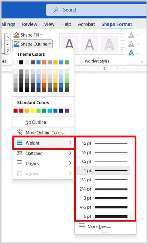 how to change shape outline weight in word