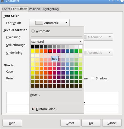 how to change text color in libreoffice draw