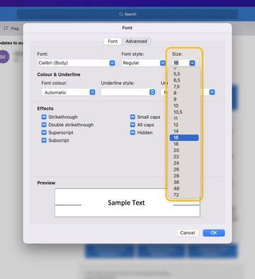 how to change text display size in outlook