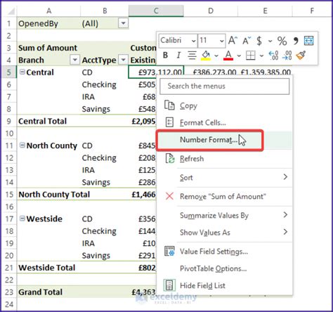 how to change the number format in a pivot table