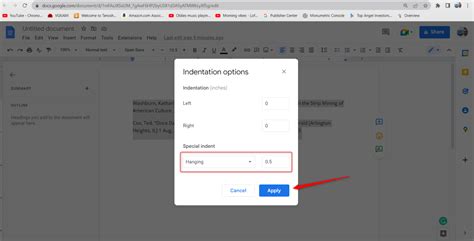 how to do a hanging tab on google docs