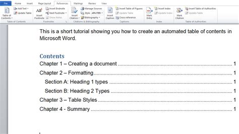 how to do an automated table of contents in word