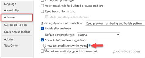 how to enable predictive text in word