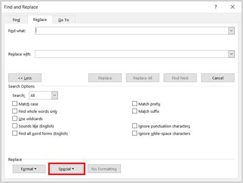 how to find and replace characters in word
