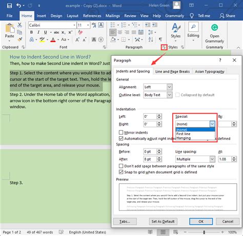 how to indent the second line of a paragraph in word