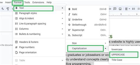 how to make all letters uppercase in google docs