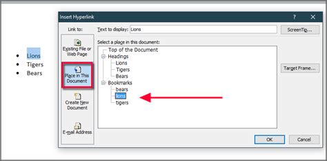 how to make index hyperlink in word