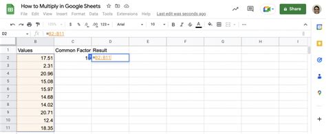 how to make multiplication formula in google sheets