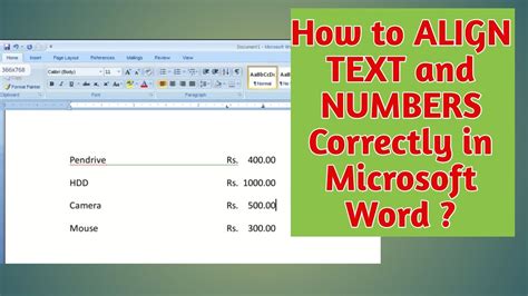 how to right align numbers in word