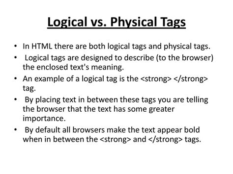 what are logical and physical tags in html