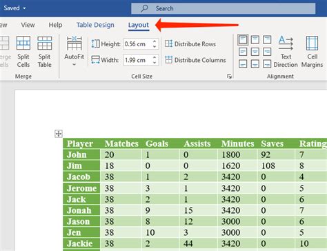 where is the table tab in word